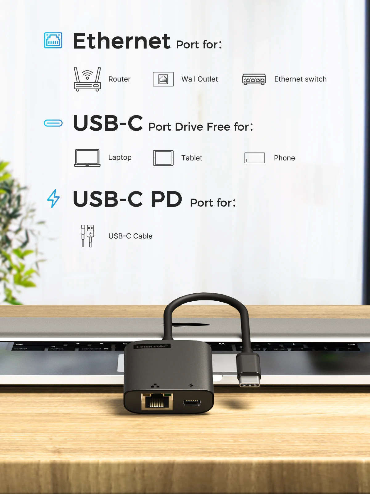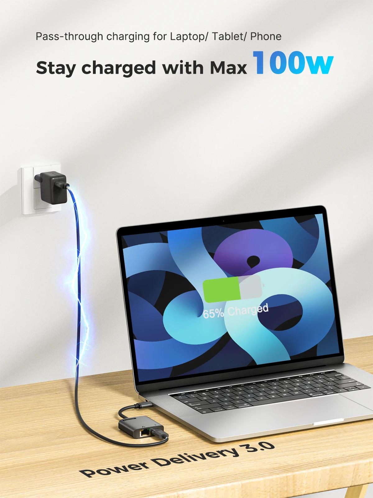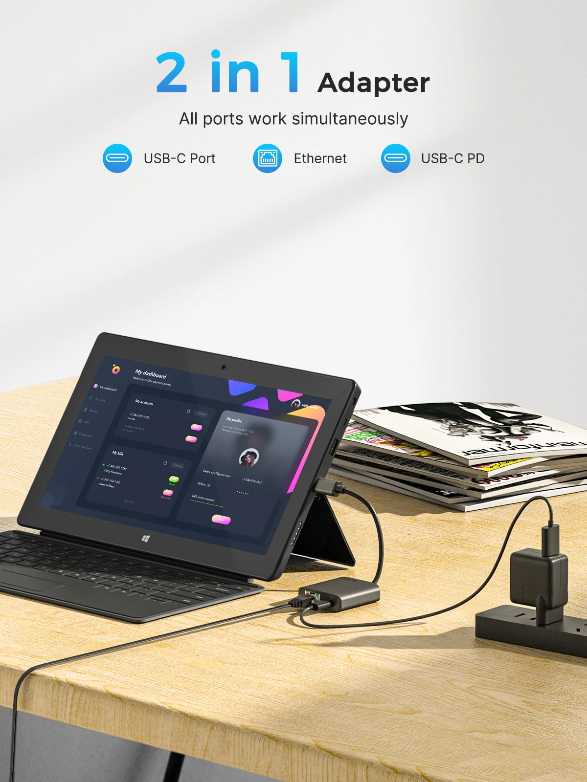 1. Type-C2-in-1 multi-function expansion dock, 1 USB C PD charging interface, and 1 1000M network port.
