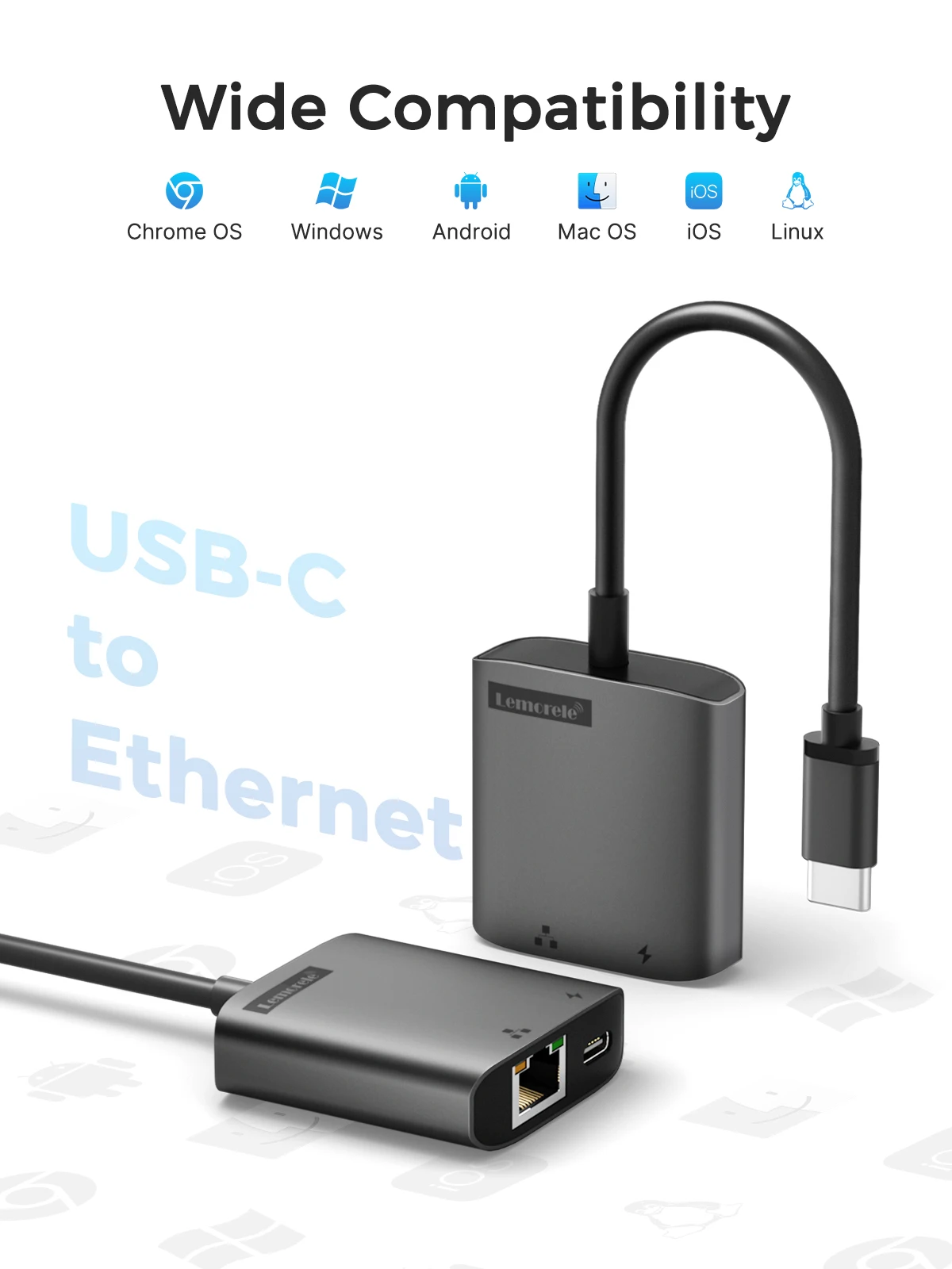 1000Mbps USB C Ethernet Adapter USB3.0 Type-C to RJ45 Network Card for Laptop S Nintendo Switch PC Internet